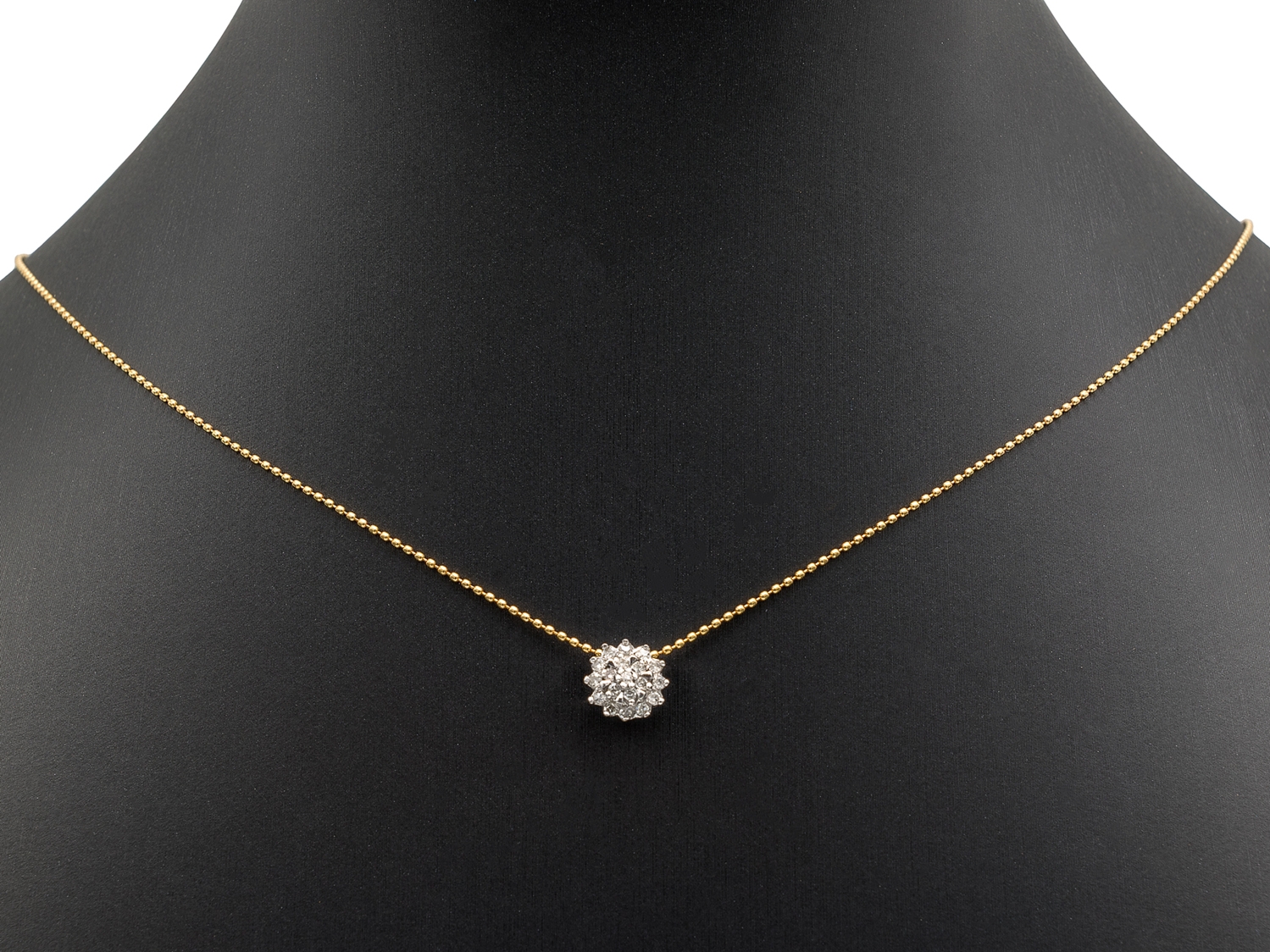 Dezenter Ring aus Gelbgold 750 mit 19 Diamanten und Anhänger an Kette, Gelbgold 585, mit 19 Diamanten