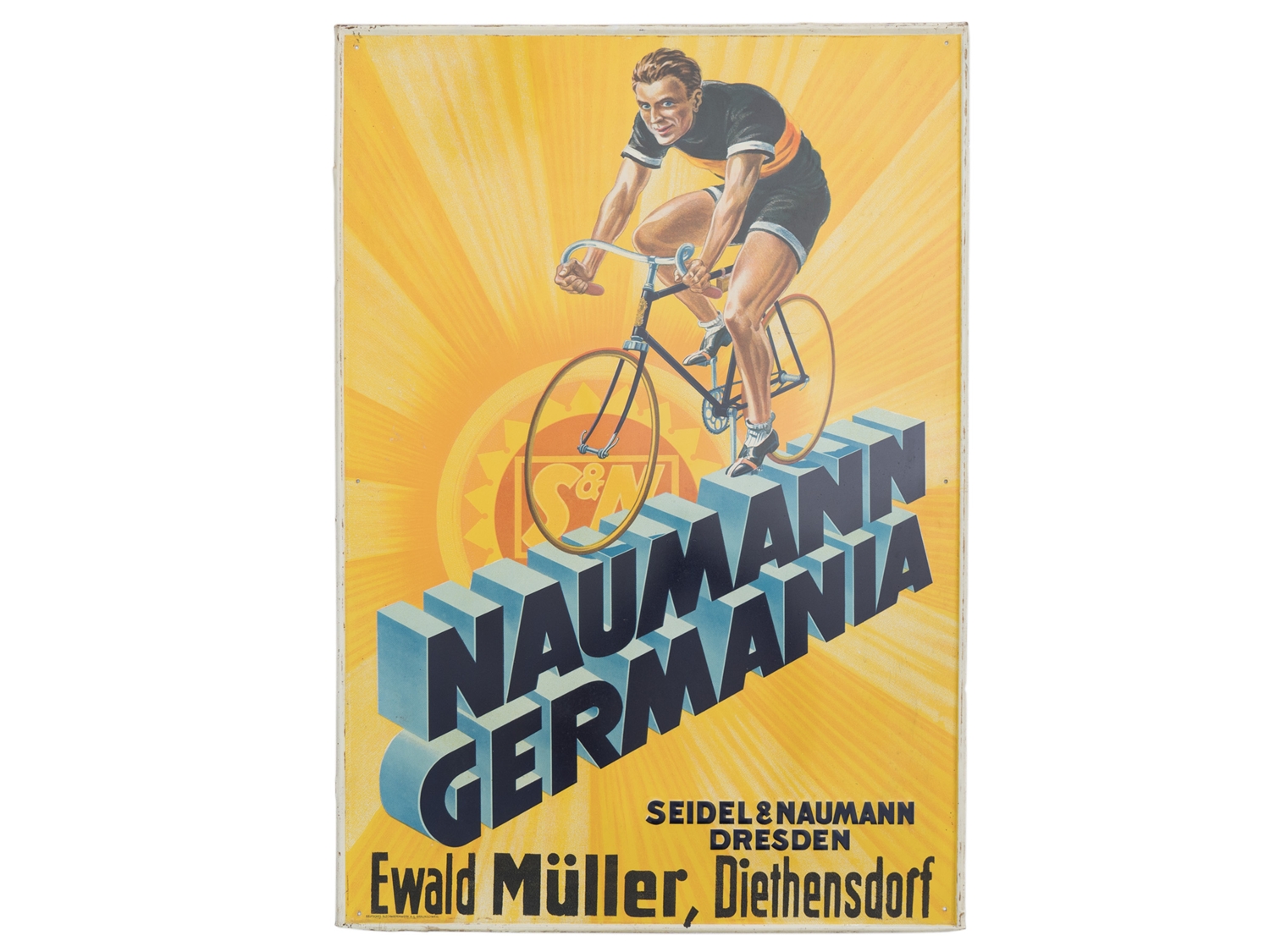 Blechschild Naumann Germania, im Traumzustand! Dresden, um 1910 (1+)