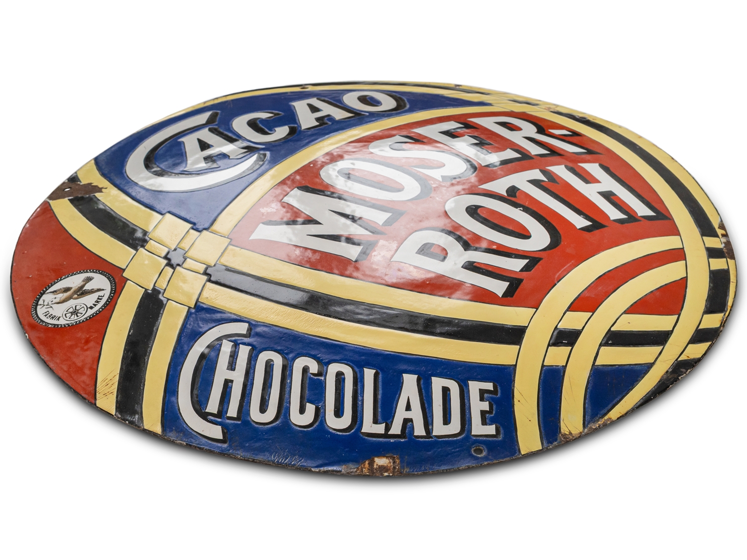 Emailschild Moser Roth, Cacao, Chocolade, Großformat, Stuttgart um 1905 (1-2)
