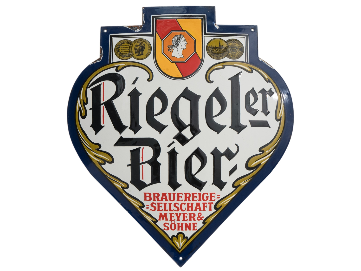 Emailschild Riegeler Bier, Riegel am Kaiserstuhl, um 1920 (1-)