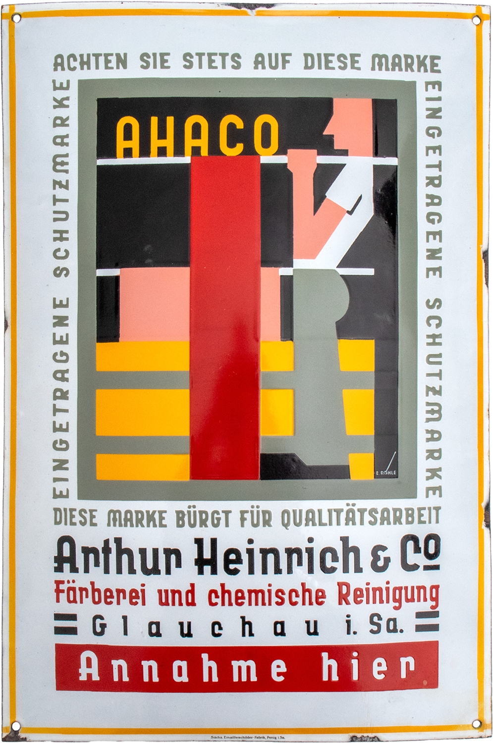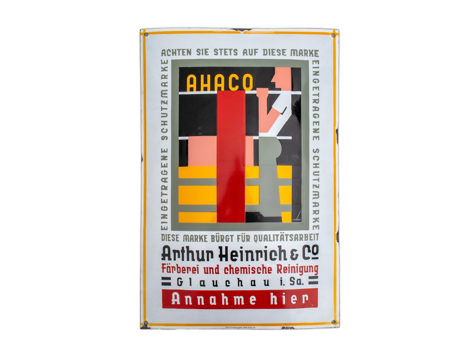 Emailschild Ahaco, Bauhaus-Entwurf, Erich Röhle, Glauchau in Sachsen, um 1920 (1-)