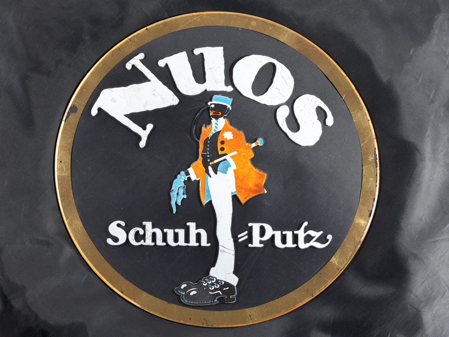 Glasschild Nuos Schuh-Putz, emailliert, Frankfurt am Main, um 1920