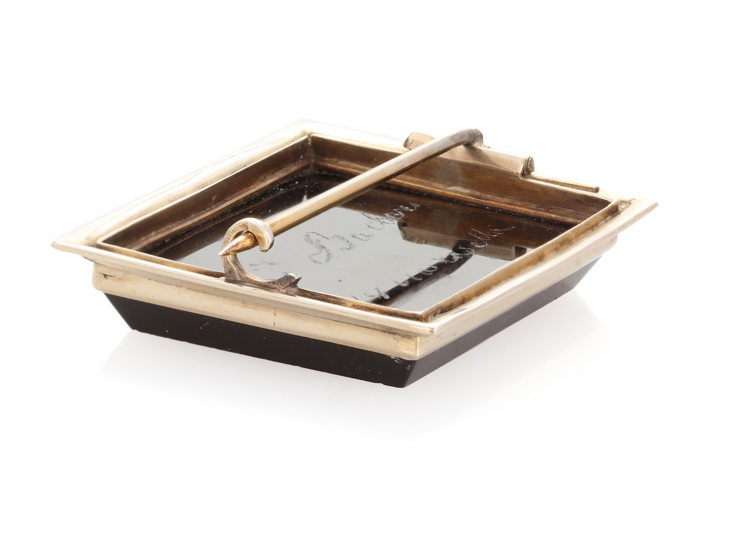 Antike signierte Mikromosaik-Brosche, Italien 19.Jhd., mit 585 Gelbgoldfassung