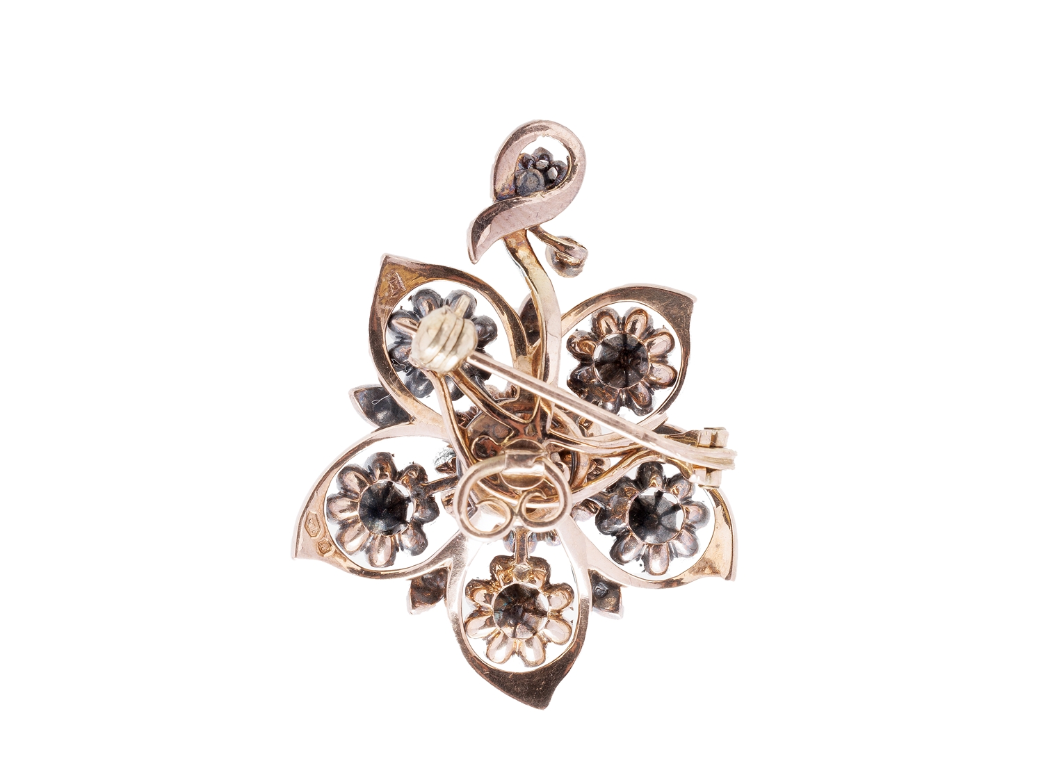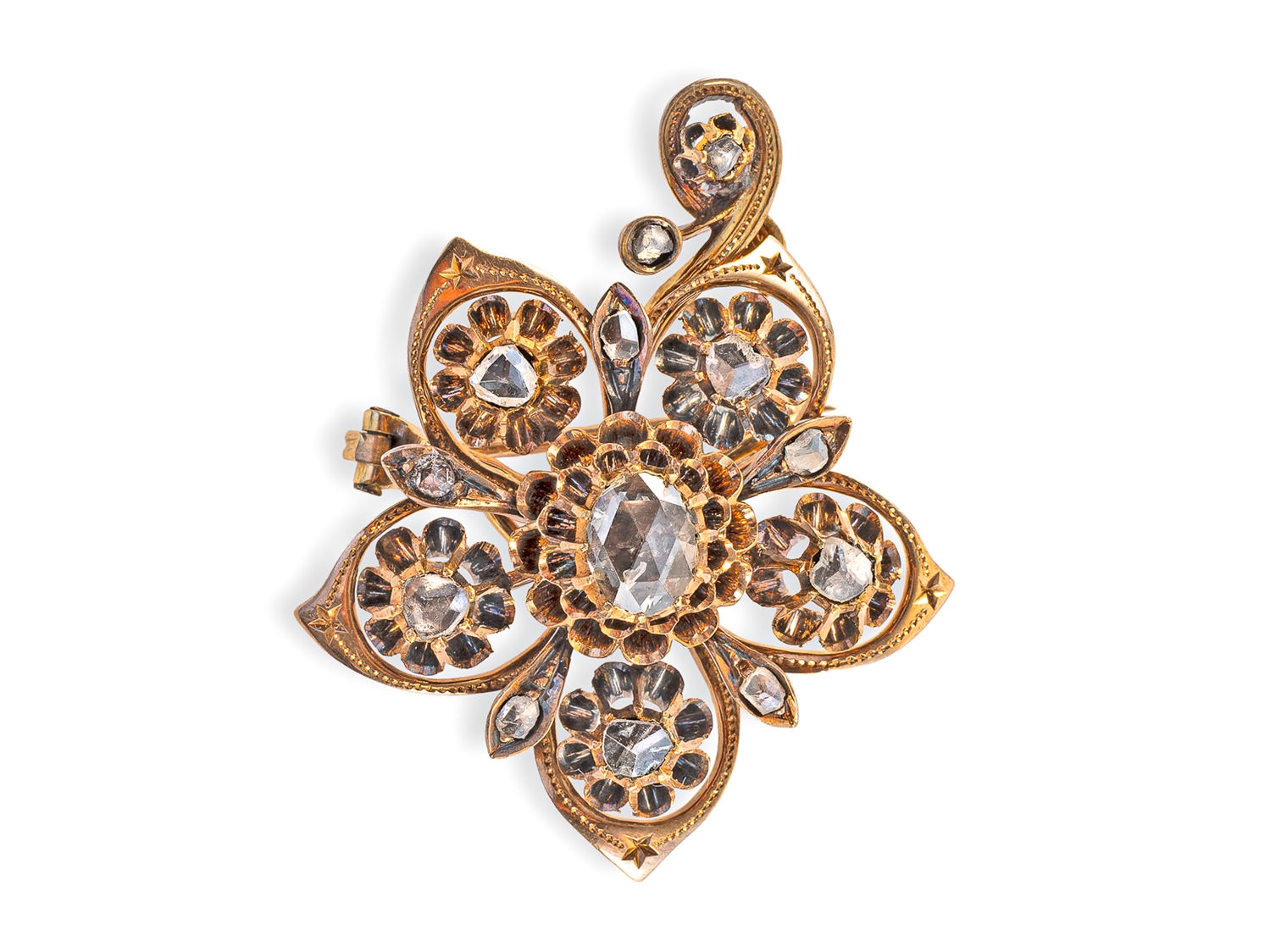 Diamantbrosche, Anhänger in 14 K, 585er Gold Mitte 19. Jhd.