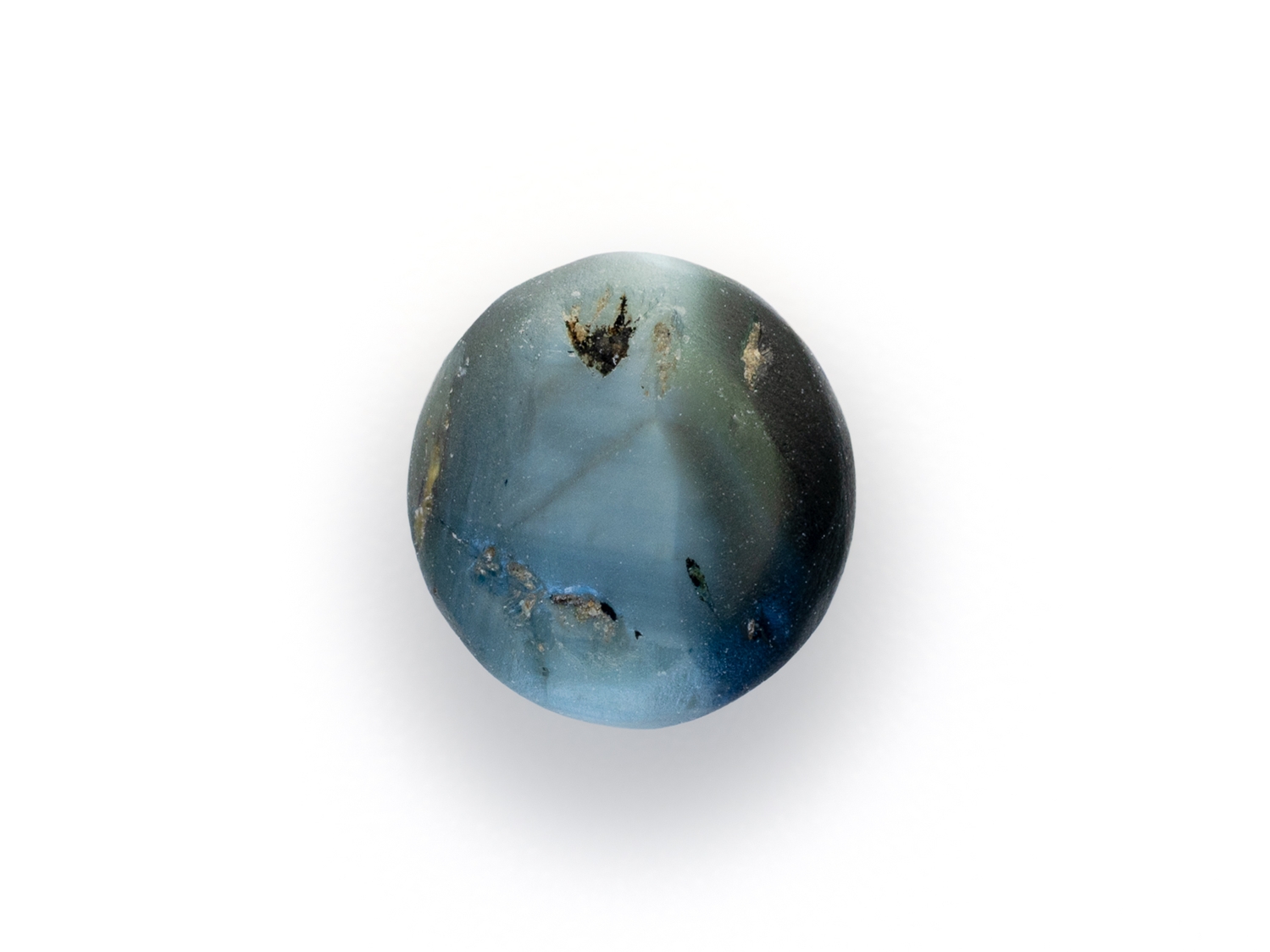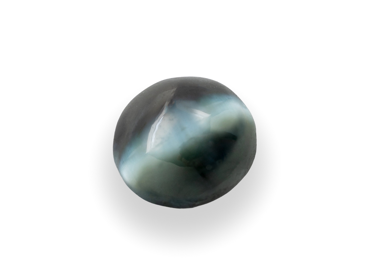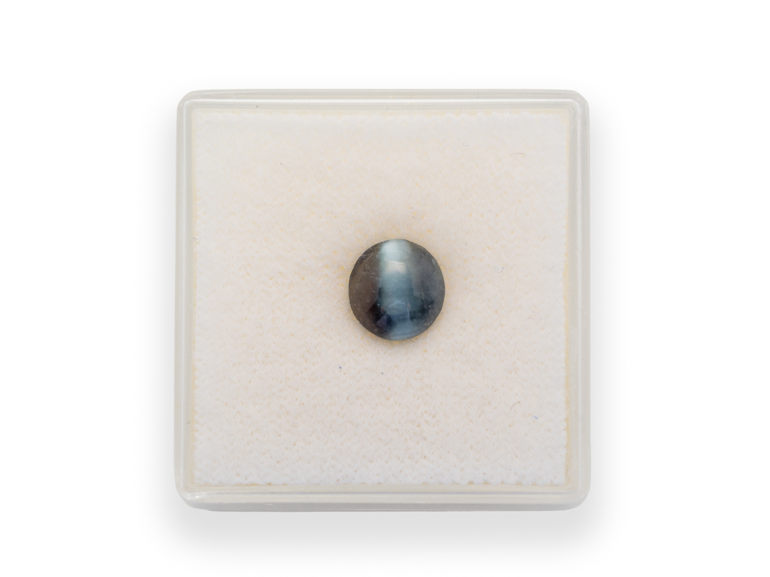 Cabochon eines natürlichen Alexandrit Katzenauges im Format 6,90 x 6.51 x 3,37 mm, Gewicht 1,53 Carat, changierend von bläulich-grün nach rötlich-braun. DSEF Testbericht KSB6453 vom 16.01.2025 anbei.